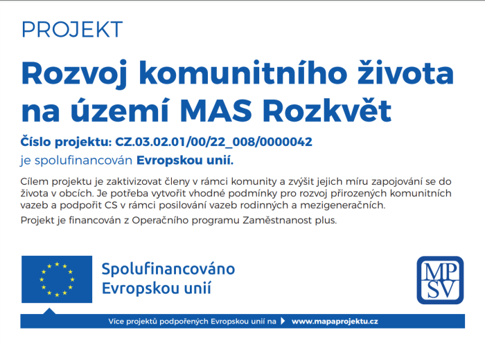 Cílem projektu je zaktivizovat členy v rámci komunity a zvýšit jejich míru zapojování se do života v obcích. Je potřeba vytvořit vhodné podmínky pro rozvoj přirozených komunitních vazeb a a podpořit CS v rámci posilování vazeb rodinných a mezigeneračních.